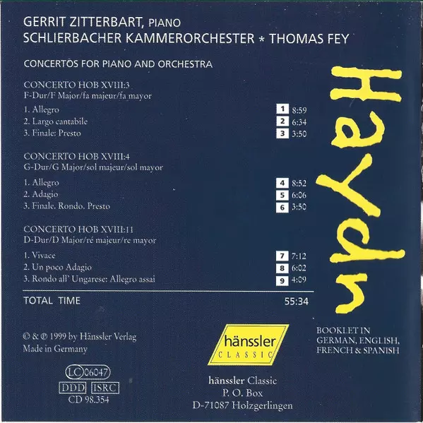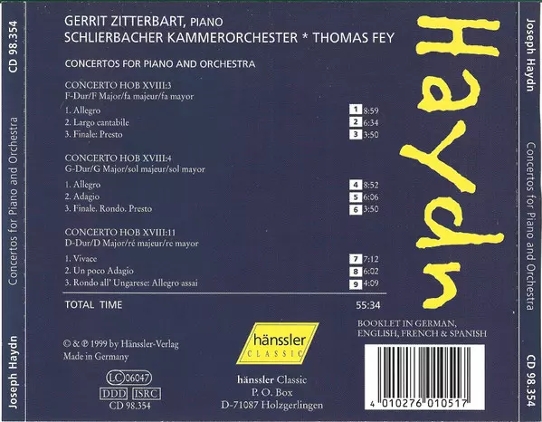 | Titel | Konzerte Für Klavier Und Orchester = Concertos For Piano And Orchestra (F-Dur/F Major - G-Dur/G Major - D-Dur/D Major) |