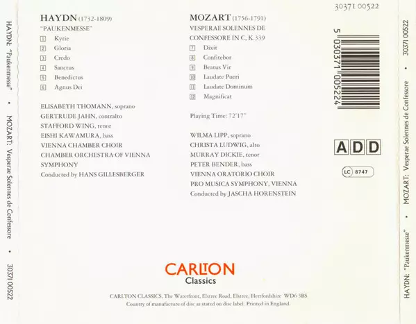| Bass Vocals Eishi Kawamura | Choir Wiener Kammerchor | Composed By Joseph Haydn | Conductor Hans Gillesberger | Contralto Vocals Gertrude Jahn | Orchestra Wiener Kammerorchester | Soprano Vocals Elisabeth Thomann | Tenor Vocals Stafford Wing | ||