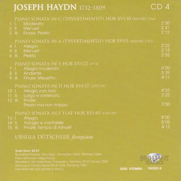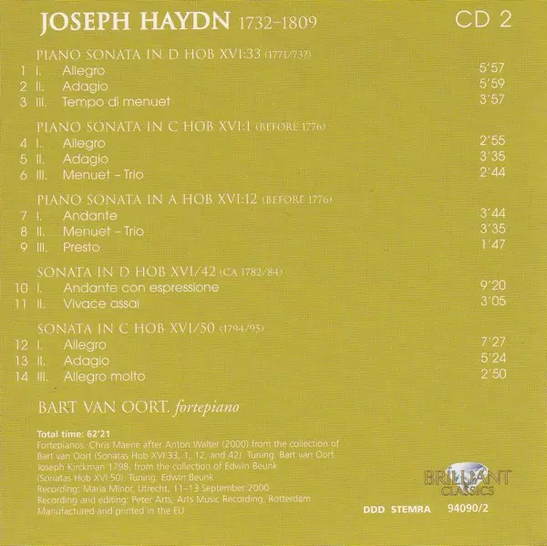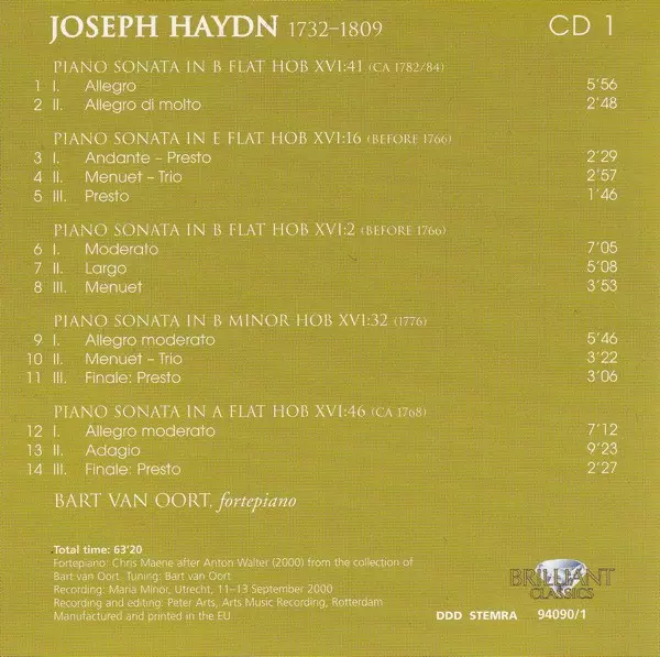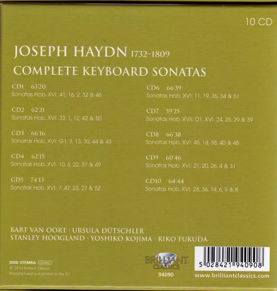 Joseph Haydn: Complete Keyboard Sonatas Die Version auf 10CD/Box Set in Standard- Auflage. Diese besondere Auflage wurde veröffentlicht in Niederlande im Verlag Brilliant Classics Im Jahr 2020. Album kann als folgendes Genre klassifiziert werden Klassische Musik.