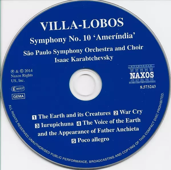 Symphony No.10 'Ameríndia' - Oratorio For Tenor, Baritone, Bass, Mixed Chorus And Orchestra, A. 511 (Sumé, Father Of Fathers) | 60:47 min |