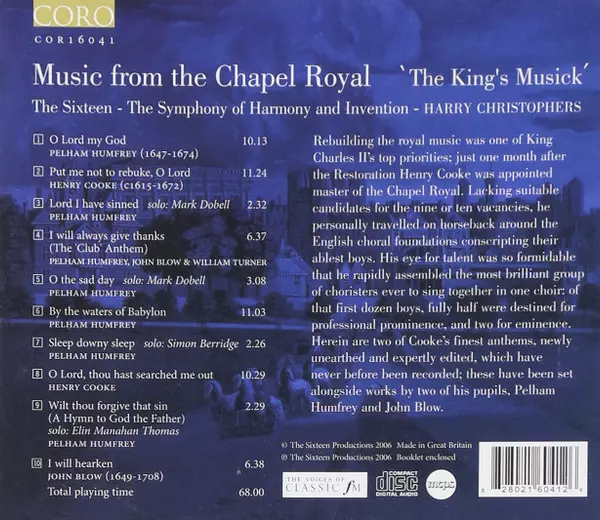 Künstler | The Sixteen | Harry Christophers | John Blow | Pelham Humfrey | Henry Cooke |