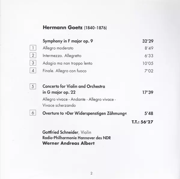 Künstler | Werner Andreas Albert | NDR Chor | Radio-Philharmonie Hannover Des NDR | Volker Banfield | Gottfried Schneider | Hermann Goetz | Stephanie Stiller |
