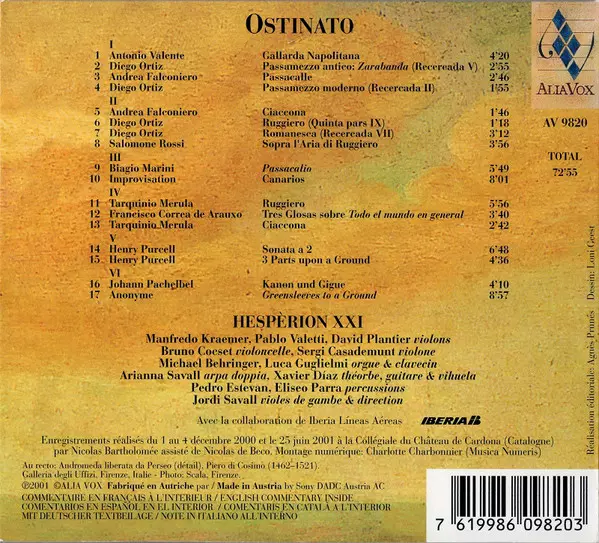 Composed By Diego Ortiz | Harp [Arpa Doppia] Arianna Savall | Vihuela [De Mano] Xavier Díaz-Latorre | Viola da Gamba [Viole de Gambe Basse] Jordi Savall | Violone Sergi Casademunt | |||
