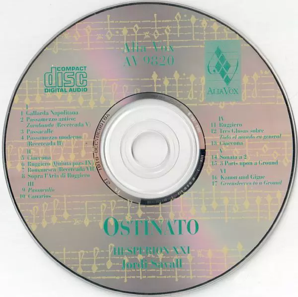 Composed By Diego Ortiz | Harp [Arpa Doppia] Arianna Savall | Harpsichord Michael Behringer | Tambourine Pedro Estevan | Vihuela [De Mano] Xavier Díaz-Latorre | Viola da Gamba [Viole de Gambe Soprano] Jordi Savall | Violone Sergi Casademunt | |||
