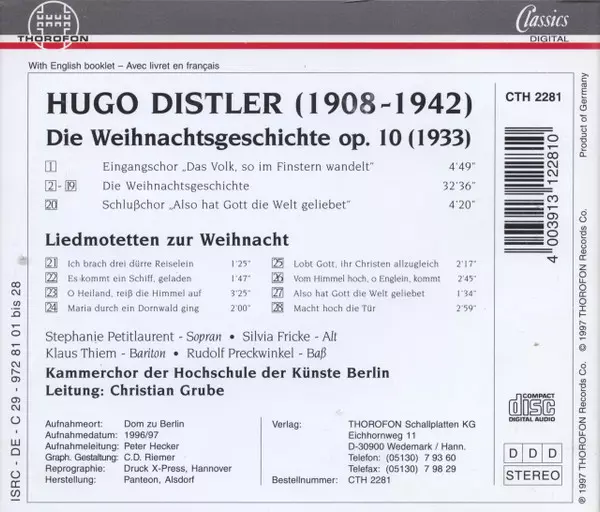 Künstler | Hugo Distler | Kammerchor Der Hochschule Der Künste Berlin | Christian Grube |