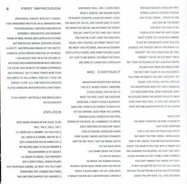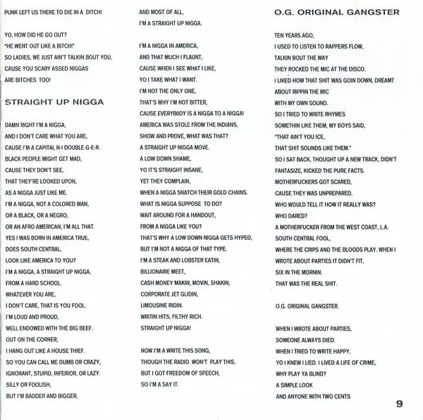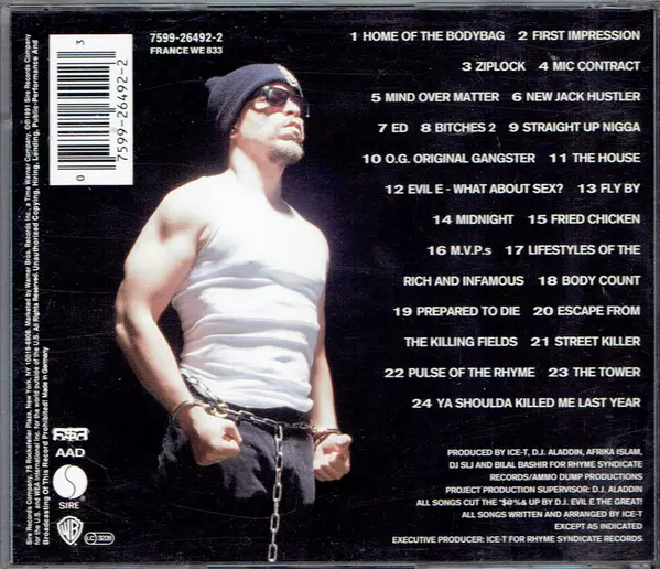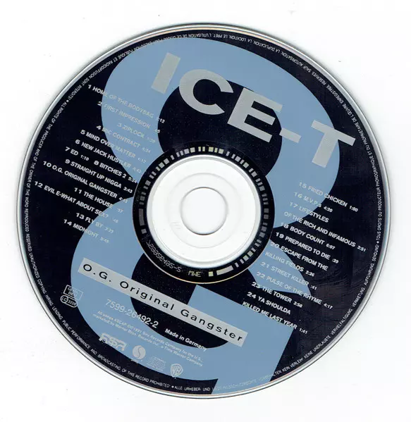 Ice-T: O.G. Original Gangster Die Version auf CD in Standard- Auflage. Diese besondere Auflage wurde veröffentlicht in Europa im Verlag Rhyme $yndicate Records In Zusammenarbeit mit Sire und Warner Bros. Records am 14. Mai 1991.
