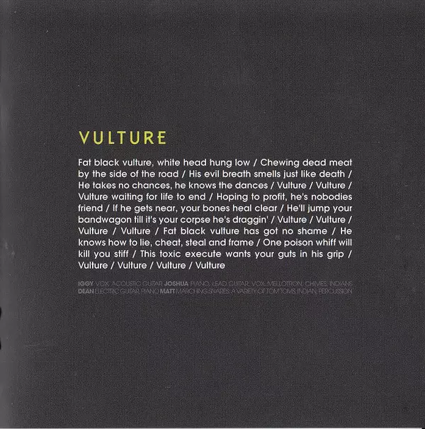 Electric Guitar, Piano Dean Fertita | Piano, Lead Guitar, Vocals [Vox], Mellotron, Chimes, Other [Indians] Josh Homme | Snare [Marching Snares], Tom Tom [A Variety Of Tom Toms], Other [Indian], Percussion Matt Helders | Vocals [Vox], Acoustic Guitar Iggy Pop