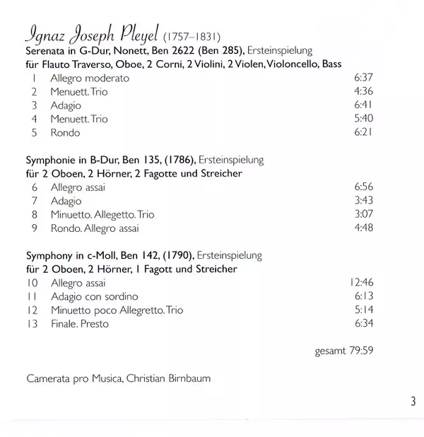 Künstler | Ignaz Pleyel | Camerata Pro Musica Chamber Orchestra | Christian Birnbaum |