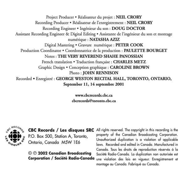 | Künstler | Isabel Bayrakdarian | Elmer Iseler Singers | Raffi Armenian |