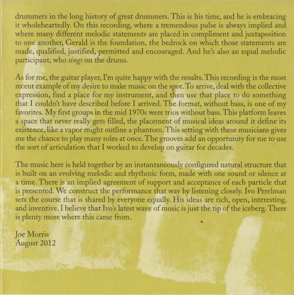 | Künstler | Ivo Perelman | Gerald Cleaver | Joe Morris |