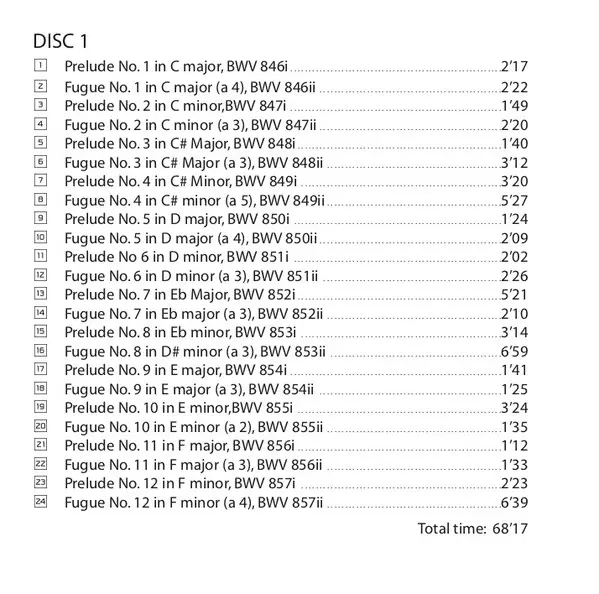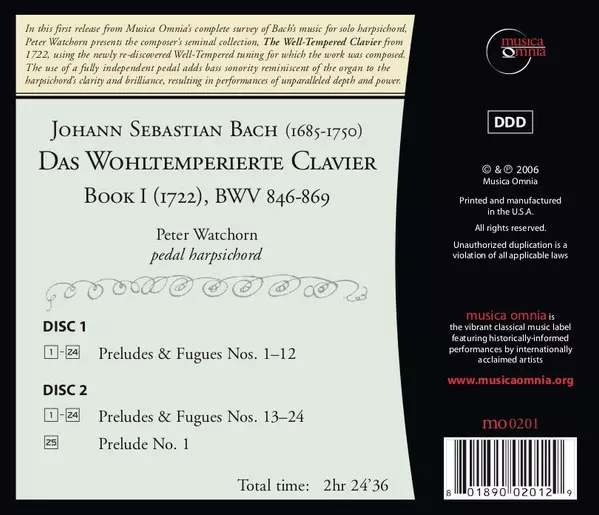 Johann Sebastian Bach: Das Wohltemperierte Clavier: Book I Die Version auf 2CD in Standard- Auflage. Diese besondere Auflage wurde veröffentlicht im Verlag Musica Omnia am 1. Juni 2006. Album Genres übergreifend Klassische Musik und Barockmusik.