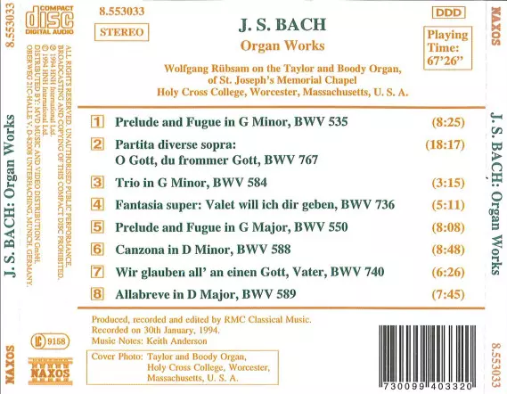 Titel | Organ Works BWV 535, 550, 584, 589, 736, 740 & 767 |