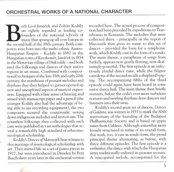 | Künstler | Leoš Janáček | Eugene Ormandy | George Szell | Zoltán Kodály | Andrew Davis |