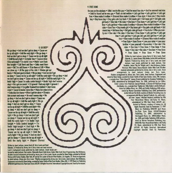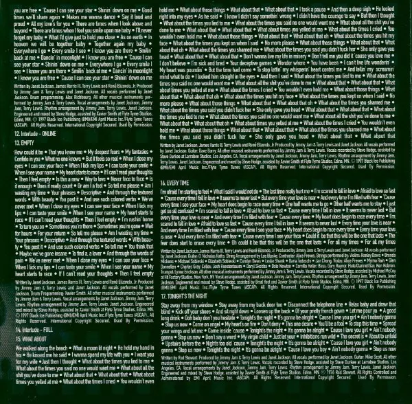 Drum Programming Alex Richbourg | Engineer [Assistant], Mixed By [Assistant] Xavier Smith | Engineer, Mixed By Steve Hodge | Guitar Mike Scott (7) | Instruments [All Other Musical Instruments] Jimmy Jam & Terry Lewis | Keyboards James "Big Jim" Wright | Recorded By [Vocals, Assistant] Tim Lauber | Recorded By [Vocals] Steve Hodge | Vocals [All] Janet Jackson | Written-By James Harris III, Janet Jackson, René Elizondo Jr., Terry Lewis