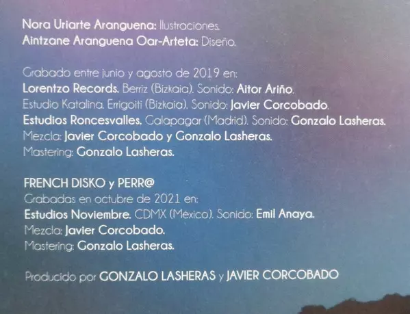 Bass Mikel Caballero | Drums Nacho Colis | Electric Guitar Gonzalo Lasheras, Jaime Alejandro Cornelio Yakaman | Music By, Lyrics By, Vocals, Programmed By Javier Corcobado | Organ [Hammond] Alicia Alemán | Trombone Oscar Aparicio | Vocals Aintzane Aranguena