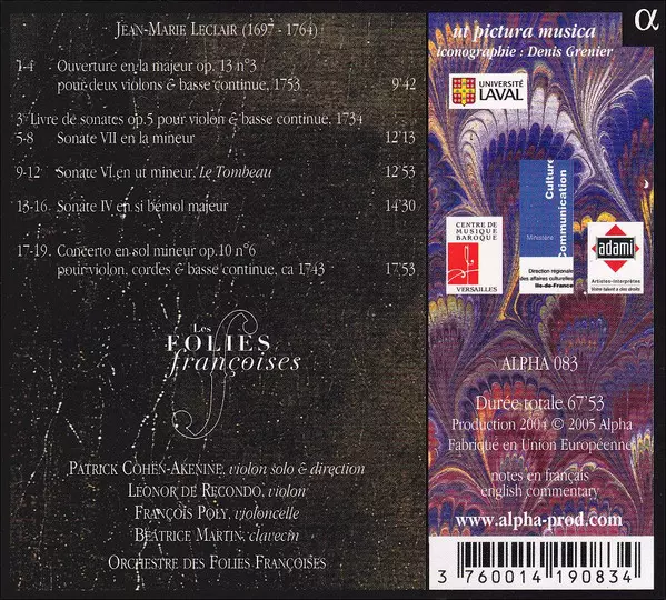 | Künstler | Jean Marie Leclair | Les Folies Françoises | Patrick Cohën-Akenine |