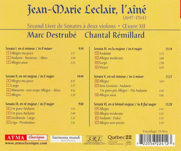 | Künstler | Jean Marie Leclair | Marc Destrubé | Chantal Rémillard |