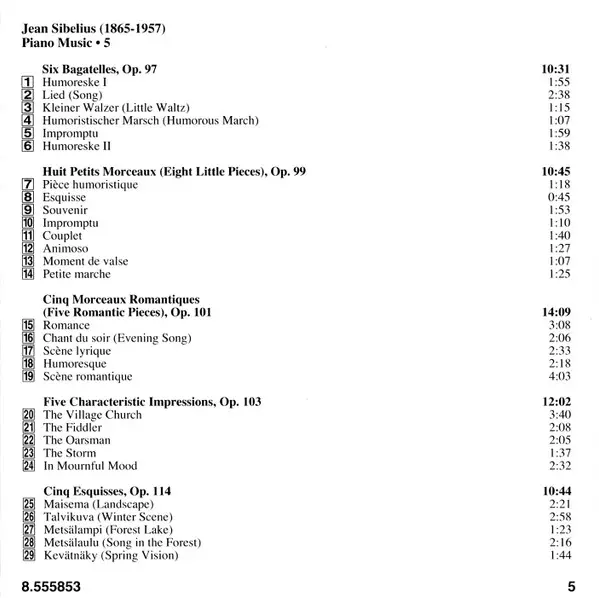 Cinq Esquisses , Op. 114 (Five Sketches) | 10:44 min |