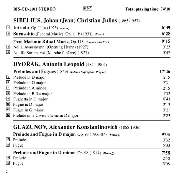 Künstler | Antonín Dvořák | Jean Sibelius | Alexander Glazunov | Hans-Ola Ericsson |