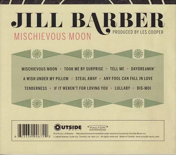 Jill Barber: Mischievous Moon Die Version auf CD in Standard- Auflage. Diese besondere Auflage wurde veröffentlicht in Kanada im Verlag Outside Music Im Jahr 2017. Album Genres übergreifend Folk, World, & Country, Jazz und Country-Blues.