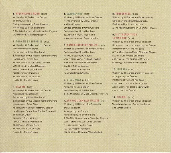Arranged By Les Cooper (3) | Flugelhorn Bryden Baird | Flute Joseph Shabason | Harmony Vocals Emma-Lee | Percussion [Additional] Rosendo León | Vibraphone Michael Davidson (3) | Vocals [Additional] The Good Lovelies | Written-By Jill Barber, Les Cooper (3)