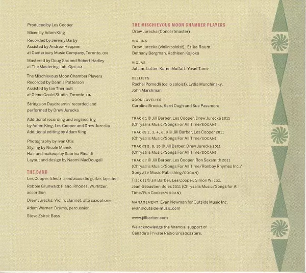 Arranged By [Horns] Drew Jurecka, Les Cooper (3) | Clarinet, Violin, Viola, Alto Saxophone Drew Jurecka | Recorded By [Strings] Drew Jurecka | Strings Drew Jurecka | Written-By Jill Barber, Les Cooper (3)