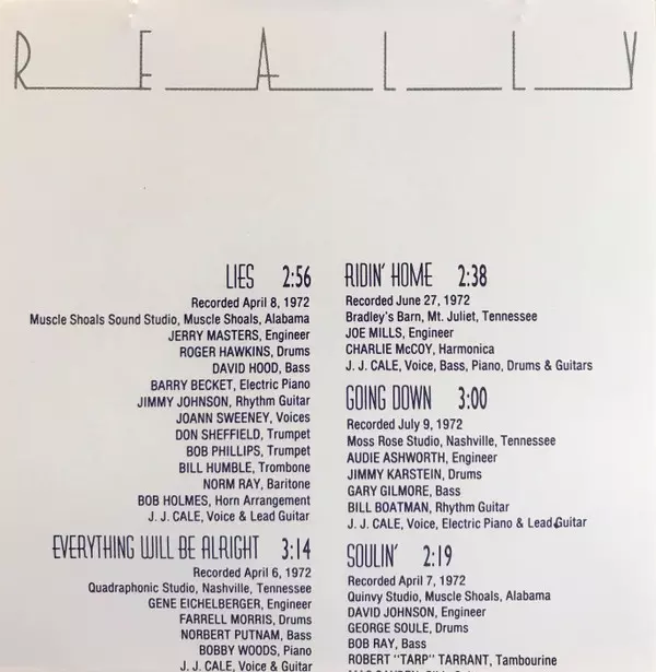 Bass Bob Ray | Drums George Soule | Engineer David Johnson (7) | Slide Guitar Mac Gayden | Tambourine Robert Tarrant | Voice, Rhythm Guitar J.J. Cale