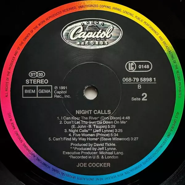 Joe Cocker: Night Calls Die Version auf Vinyl LP in Standard- Auflage. Diese besondere Auflage wurde veröffentlicht in Europa im Verlag Capitol Records Im Jahr 1991. Album Genres übergreifend Rock, Pop und Pop Rock.