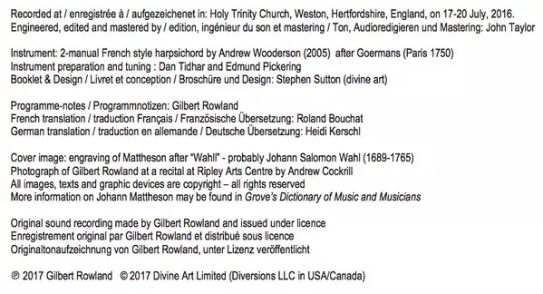 | Künstler | Johann Mattheson | Gilbert Rowland |