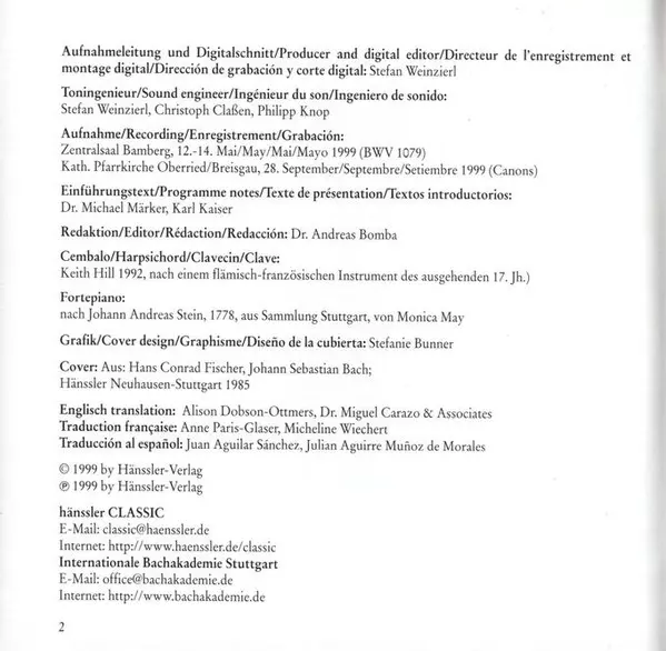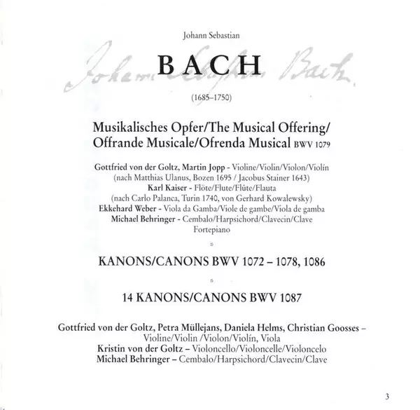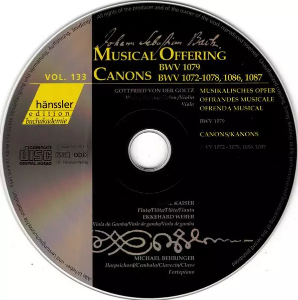 | Titel | Musical Offering BWV 1079 / Canons BWV 1072 - 1078, 1086, 1087 |