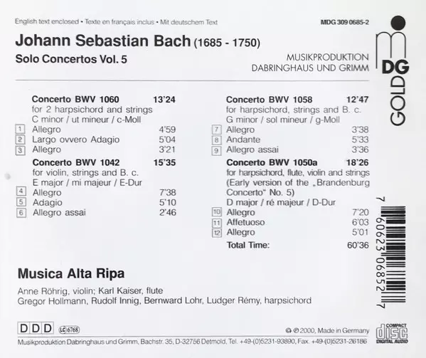 | Künstler | Johann Sebastian Bach | Musica Alta Ripa |