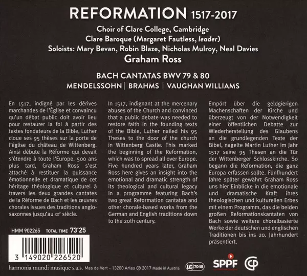 | Künstler | Johann Sebastian Bach | Johannes Brahms | Felix Mendelssohn-Bartholdy | Ralph Vaughan Williams | The Choir Of Clare College | Graham Ross |