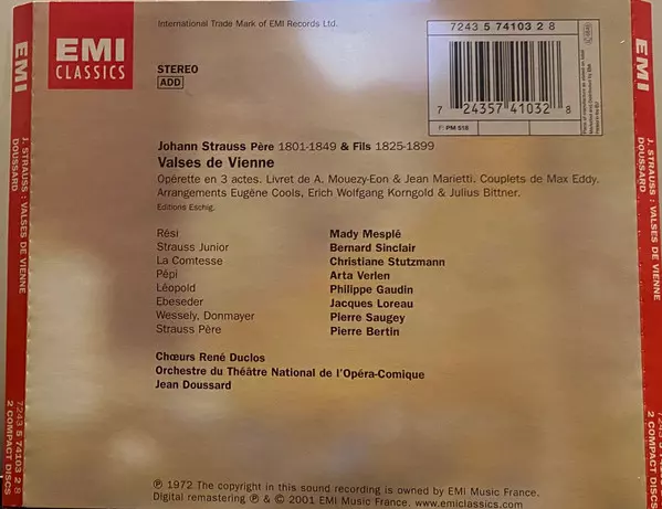 | Künstler | Johann Strauss Jr. | Erich Wolfgang Korngold | Mady Mesplé | Orchestre Du Théâtre National De L'Opéra-Comique | Julius Bittner | Bernard Sinclair | Jean Doussard | Eugène Cools |