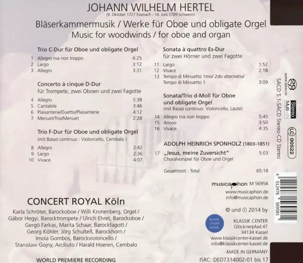 | Künstler | Johann Wilhelm Hertel | Concert Royal Köln |