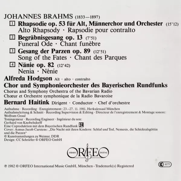 | Künstler | Johannes Brahms | Symphonie-Orchester Des Bayerischen Rundfunks | Bernard Haitink | Chor Des Bayerischen Rundfunks | Alfreda Hodgson |