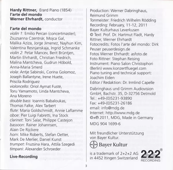 | Künstler | Johannes Brahms | L'arte Del Mondo | Werner Ehrhardt | Hardy Rittner |