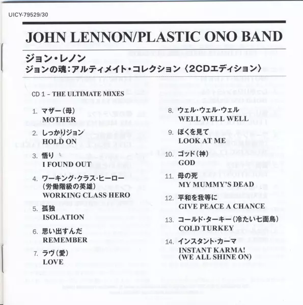 John Lennon: John Lennon / Plastic Ono Band Die Version auf 2CD/Box Set in Standard- Auflage. Diese besondere Auflage wurde veröffentlicht in Japan im Verlag Apple Records In Zusammenarbeit mit Universal Music Group International am 23. April 2021.