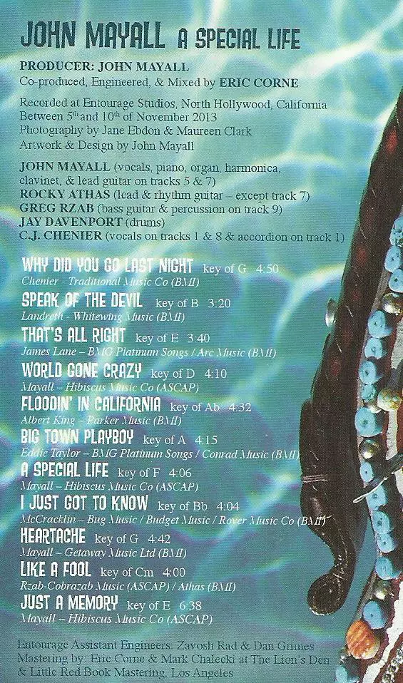 John Mayall: A Special Life Die Version auf CD in Standard- Auflage. Diese besondere Auflage wurde veröffentlicht in USA im Verlag Forty Below Records am 23. Juni 2014.