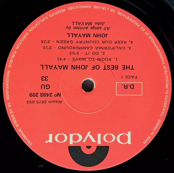 Engineer Jim Hobson | Lead Guitar, Sitar, Resonator Guitar Jerry McGee | Rhythm Guitar, Piano, Guitar [12 String] John Mayall