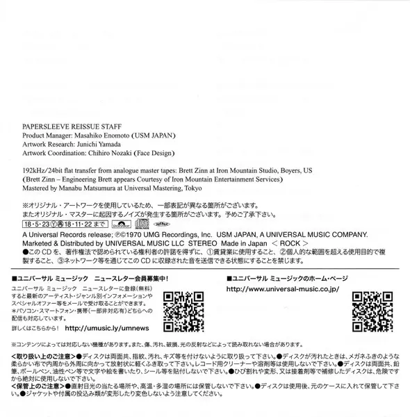 | Mehr Information | Limited Japan SHM-CD Paper Sleeve (Polydor, 2018) |