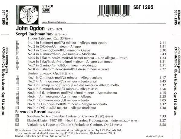 Rachmaninov: Etudes Tableaux, Op. 33 & Op. 39 / Busoni: Piano Works - CD