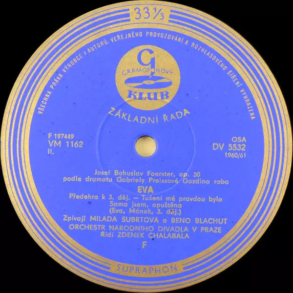 Künstler | Orchestr Národního Divadla | Josef Bohuslav Foerster | Beno Blachut | Milada Šubrtová | Václav Bednář |