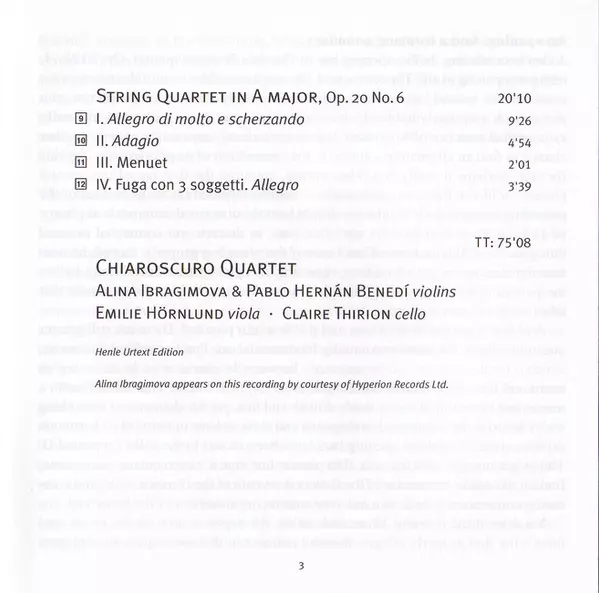 | String Quartet In A Major, Op. 20 No. 6 | 20:10 min |