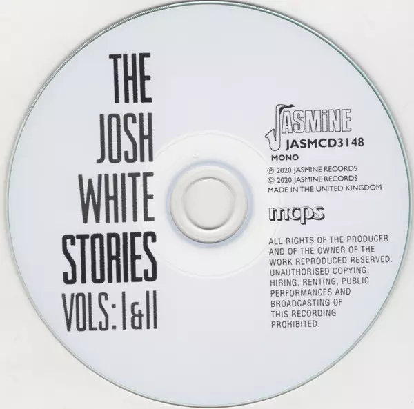 Josh White: The Josh White Stories Vols: I & II Die Version auf CD in remastered Auflage. Diese besondere Auflage wurde veröffentlicht in Europa im Verlag Jasmine Records am 17. Januar 2020. Album Genres übergreifend Blues, Chicago Blues, Country-Blues und Delta-Blues.