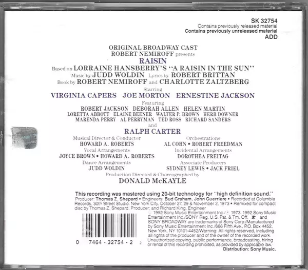 | Titel | Raisin (Original Broadway Cast) |