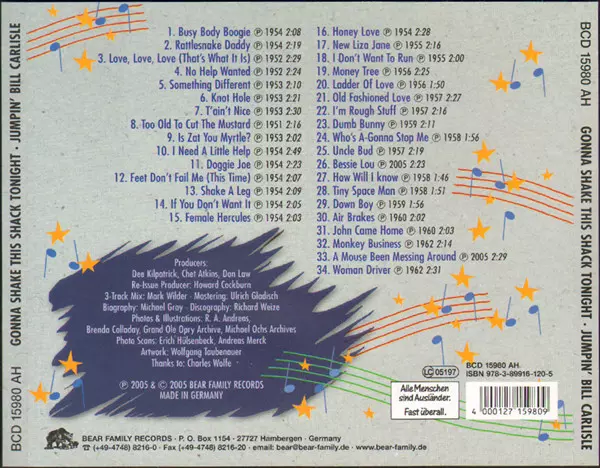 Bill Carlisle: Busy Body Boogie Die Version auf CD in Standard- Auflage. Diese besondere Auflage wurde veröffentlicht in Deutschland im Verlag Bear Family Records am 12. Juli 2005. Album Genres übergreifend Folk, World, & Country und Country.