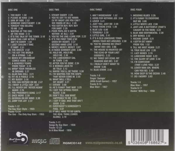 Kay Starr: Kay Starr, Vol. 2: Seven Classic Albums Die Version auf 4CD in remastered Auflage. Diese besondere Auflage wurde veröffentlicht in Europa und UK im Verlag Real Gone am 25. November 2014. Album Genres übergreifend Pop, Jazz und Vokalmusik.
