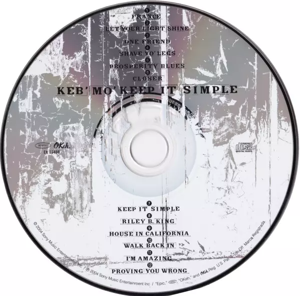 Keb' Mo': Keep It Simple Die Version auf CD in Standard- Auflage. Diese besondere Auflage wurde veröffentlicht in USA im Verlag Epic In Zusammenarbeit mit Okeh am 10. Februar 2004.