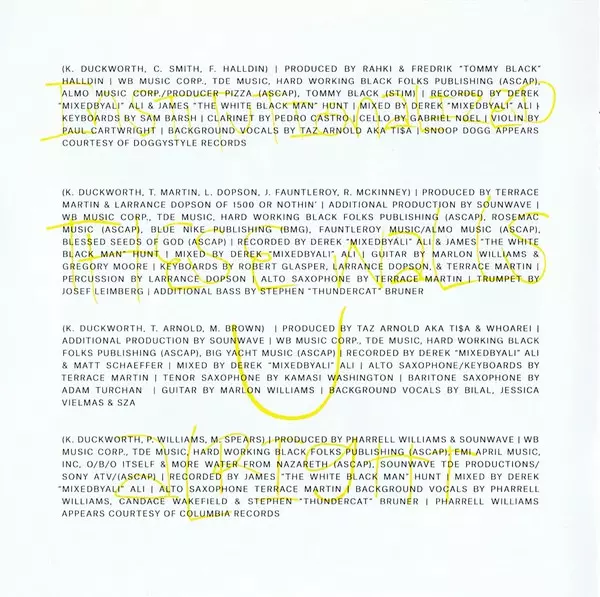 Alto Saxophone, Vocoder Terrace Martin | Backing Vocals JaVonté, Preston Harris, Stephen Bruner, Wyann Vaughn | Guitar Marlon Williams (3) | Keyboards Sounwave, Terrace Martin | Percussion Larrance Dopson | Producer LoveDragon | Recorded By Derek "MixedByAli" Ali, James Hunt (7), Matt Schaeffer | Trumpet Josef Leimberg | Written-By Josef Leimberg, Kendrick Duckworth, Mark Spears, Rose McKinney, Terrace Martin