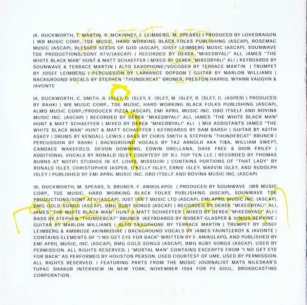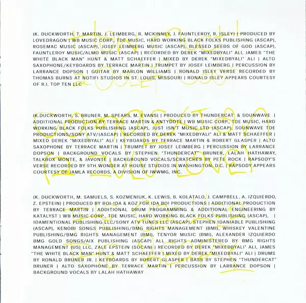 Backing Vocals Whitney Alford | Bass Stephen Bruner | Guitar [Additional Guitar] Marlon Williams (3), Matt Schaeffer | Producer Sounwave | Producer [Additional Production] Terrace Martin | Recorded By Derek "MixedByAli" Ali, James Hunt (7), Matt Schaeffer | Written-By Ahmad Lewis (2), David Blake, Gordy Stefan Kendal, Johnny Burns (2), Kendrick Duckworth, Mark Spears, Michael Jackson